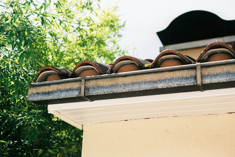 Il en va en partie de même dans une autre série où des toits banals de tuiles et des murs d’immeubles tout aussi banals se mettent à parler la langue de l’incision et de la découpe. Dans ces images cependant, Antoine Tricot éprouve le besoin de s’appuyer pour les montrer sur un pan de ciel bleu ou de feuilles vertes, révélant ainsi que tout bâtiment, toute œuvre humaine posée dans le paysage, découpe autant le ciel qu’il s’inscrit en porte-à-faux vis-à-vis de la nature, comme l’évoquent les autres images de cette série.