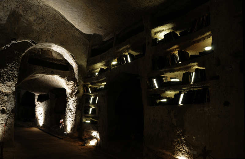 There’s not a story, not a narration : only fragments, intense fragments of noises and words carving the darkness, the same darkness in which the artist wrote a luminous text on the wall of the gate (an urban act, like Pompeii graffiti or New York tags), an unquestionable thought of Rousseau : “The inequality, almost non-existent in the state of nature, draws its strength and its increase by the development of our faculties and the progress of the human spirit and eventually it becomes stable and legitimate by the establishment of property and laws”. A firm, irrevocable and demanding declaration.