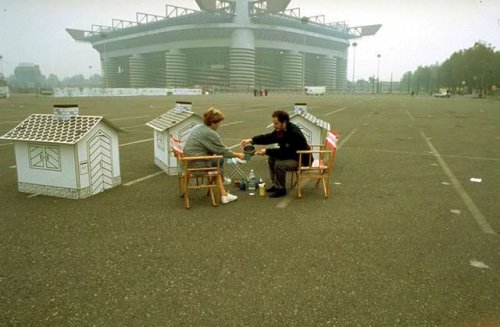 Sulla stessa linea, si ritrova Operazioni necessarie alla circolazione accelerata di ossigeno (Milano 1995) in cui l’artista invita i passanti a bere un tè in ognuna delle tre casette giocattolo prefabbricate che ha montato con sedie e fornello in luoghi diversi della città.