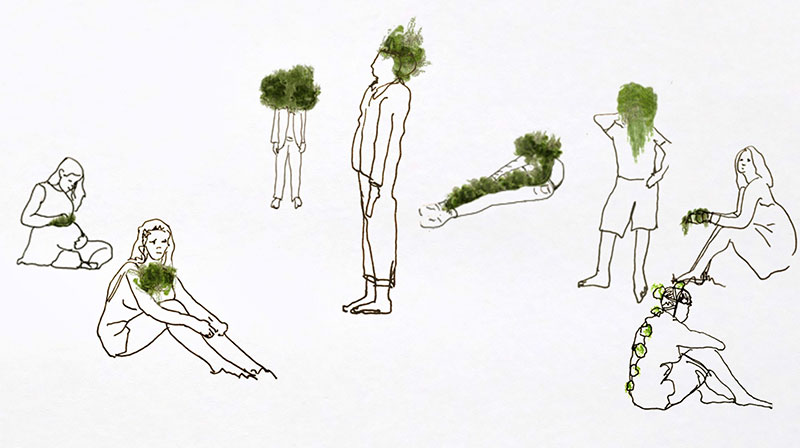 Il y avait également d’anciens punks anarchistes qui régulièrement cultivaient des plantes sur leur corps. L’idée leur serait venue lors de leur fuite hors des basses terres menacées par la montée des eaux et ouvertes aux circulations les plus diverses. Certaines espèces opportunistes avaient germé qui dans une poche, qui au creux d’une aisselle, ou encore dans une chevelure aux dreadlocks accueillantes.