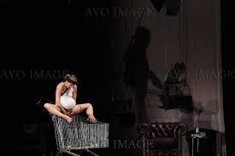 Sur les scènes contemporaines, la présence du corps prend une configuration particulière, donnant à voir parfois les représentations d’un corps malmené, soumis à un autre ordre. Plus précisément, à travers ce corps soumis du performer/acteur c’est toute une contestation de l’aliénation qui peut être donnée à voir. Or cette aliénation n’est plus présentée comme elle a pu l’être dans les années 1960-1970. C’est ici la société de consommation qui impose son image, ses illusions, ses effets : l’alimentaire, mais aussi les cumuls en tous genres deviennent plus précisément les instruments spectaculaires. Ainsi dans L’Orgie de la tolérance de Jan Fabre (2009), nous est proposé un corps dionysiaque en proie à une course effrénée à quelque quête infinie d’achats. Le principe de plaisir semble être l’objet d’un au rendez-vous indéfini, sollicité par le recours cumulatif à des produits en tous genres. Ici plus de remise en cause de type social, comme pour les avant-gardes historiques, un déplacement s’est opéré : si le plaisir semble à la mode, il est trompeur et aliène en réalité. Ce plaisir devient même insidieusement souffrance. On s’identifie alors aux chariots où s’amoncèlent des marchandises : « …on pourrait acheter à en crever… [5] ». Principe de consommation poussé à l’extrême : l’individu engendre la consommation à l’infini, l’enfantant, même. Le corps y devient lieu de passage, secrétant le débordement. Trois femmes, qui sont éclairées frontalement, accouchent dans la douleur de boissons, de produits de vaisselle, de cacahuètes et d’autres objets de consommation, accroupies dans des caddies [6]. Ainsi, ce qui est consommé est produit par le corps. Avec cet engendrement d’objets de consommation, l’espace devient métaphore d’un trop plein qui renvoie à un vide, autant d’ailleurs qu’à une souffrance aussi présente que mal perçue.