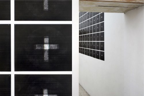 Scandita in tre sale – quella dell’Immanenza, quella dell’Incarnazione e quella della Trascendenza -, connotate rispettivamente da altrettanti colori - nero, rosso e bianco -, la personale di Patti, Abbà, perdono e inconsapevolezza - curata da Raffaella Barbato ed ospitata presso la galleria napoletana PrimoPiano – appare subito una sfida ardua non solo per lo spettatore, ma per lo stesso critico, data la molteplicità dei media adoperati e, conseguentemente, degli strumenti linguistici messi in campo, nonché la densità delle tematiche, dei riferimenti e degli umori che sollecita. In questi ultimi anni, il linguaggio di Patti conosce infatti una crescita formidabile. Se il discorso sull’informazione di massa – che abbiamo udito essere uno dei due fil rouge dell’intero percorso – implica – tra l’altro - un esponenziale allargamento dei mezzi di veicolazione dei messaggi prescelti – lasciando cadere finalmente l’identità di artista che lavora prettamente con gli audiovisivi, etichetta che gli è rimasta appiccicata addosso per molti, troppi anni ! -, la vocazione verso il discorso sociale, non aliena da implicazioni di denuncia – che praticamente da sempre accompagna, insieme appunto all’opzione audiovisiva, il lavoro di Patti – lo conduce, data anche la scelta di parlare del martoriato teatro mediorientale contemporaneo, a risalire fino agli inizi della nostra era – che notoriamente proprio in quelle regioni ha avuto i suoi albori –, all’insegna di un attento studio dei Vangeli, canonici o apocrifi che siano.