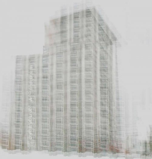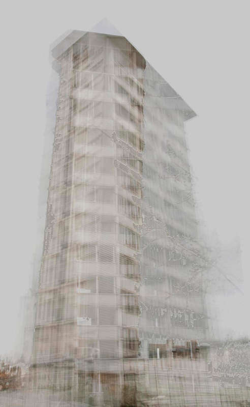 En isolant les bâtiments de leur contexte, l’habitation devient fantomatique, proche de l’abstraction. A mi-chemin entre réalité et fiction, les immeubles se dessinent lentement, transgressant le paysage qui les entoure.