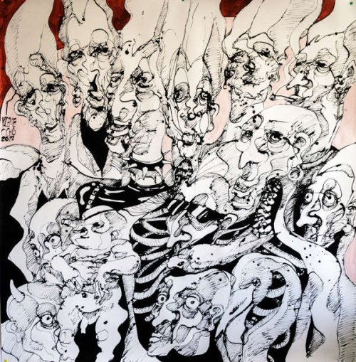 Le mélange viscéral et chaotique entre le dessin et la peinture, au service d’une recherche psycho-artistique