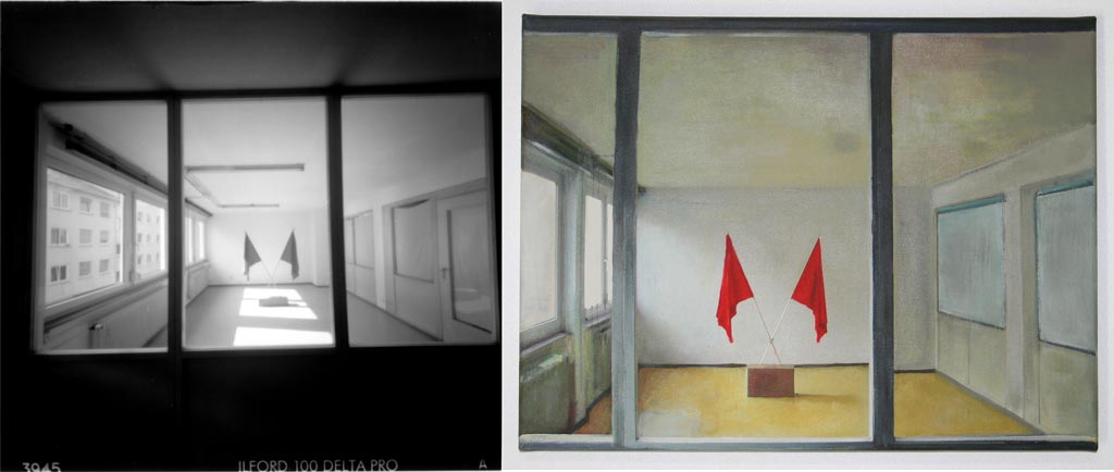 Barbara Improta - In una mia precedente ricognizione dell’arte lucana avevo evidenziato il carattere metalinguistico delle opere prodotte, la continua verifica dei linguaggi artistici, l’analisi sui media e sulla loro capacità di comunicare senso. E’ un aspetto che ritrovo nelle tue opere, l’analisi dei diversi media che utilizzi, un’analisi basata sul confronto dialettico tra di essi. Penso a Svenka Landskap (2009), una riflessione sul paesaggio e la sua rappresentazione ma anche sui meccanismi della visione e della fruizione. Una stessa porzione del reale viene fotografata, dipinta e poi esposta in uno spazio aperto verso l’esterno che sembra un quadro a sua volta. Parlami di quest’opera e del rapporto tra fotografia e pittura nelle tue opere.