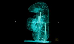 Qu’elle soit subliminale ou fantôme, l’image révélée par le travail de Xavier Lucchesi nous confronte au secret qui nous hante et nous trouble moins par son contenu que par son existence même. Voir cet invisible-là, c’est faire face à l’existence de forces non conscientes qui gisent sous les clichés comme des fauves à l’affût. Il ne consiste donc pas seulement en l’enregistrement de données factuelles par l’irradiation aux rayons X. Il consiste en la mise en relation d’éléments distincts en vue de faire apparaître ces forces enfouies, ces images subliminales ou fantôme. Il consiste en l’invention de cette image-là.
